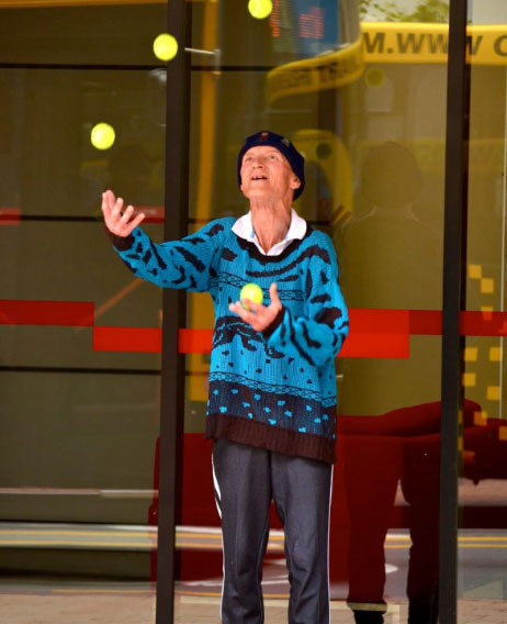 “Mike the Juggler” – Mike Wahrlich became a fixture along Wellington’s Golden Mile over a period of almost 30 years. While employed as a gardener and greenkeeper during his initial years of street entertainment, Mike became a more permanent street feature after being made redundant. Hugely popular with his beaming smile and constant juggling, Mike was always prepared to teach passers-by how to juggle. Sadly he died in a fire in 2023.