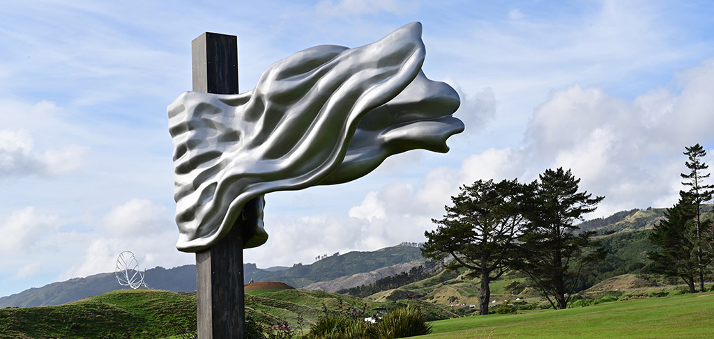 The piece was an international effort, with the steel shaping done in China, the finishing done by the Carboglass experts in Seaview while as usual Steam and Sand of Porirua coloured it perfectly. Thanks team.